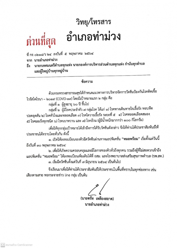 กำหนดการลงทะเบียนฉีดวัคซีนป้องกันโรคติดเชื้อ COVID-19