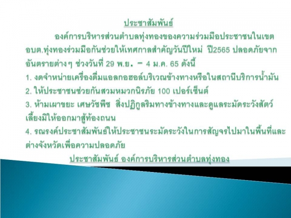 ประชาสัมพันธ์ป้องกันและลดอุบัติเหตุช่วงเทศกาลปีใหม่2565