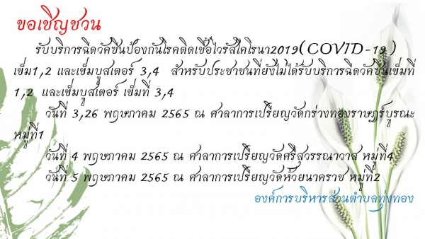 ประชาสัมพันธ์เชิญชวนรับบริการฉีดวัคซีนป้องกันโรคติดเชื้อไวรัสโคโรนา2019(COVID-19)เข็ม1,2 และเข็มบูสเตอร์ 3,4
