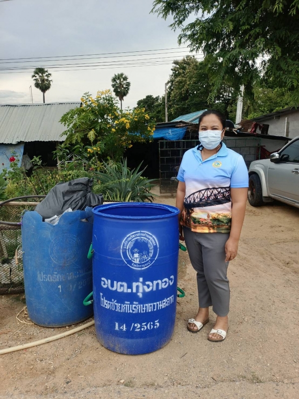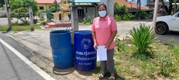เจ้าหน้าที่ดำเนินการเปลี่ยนถังขยะให้ประชาชนในตำบลทุ่งทอง