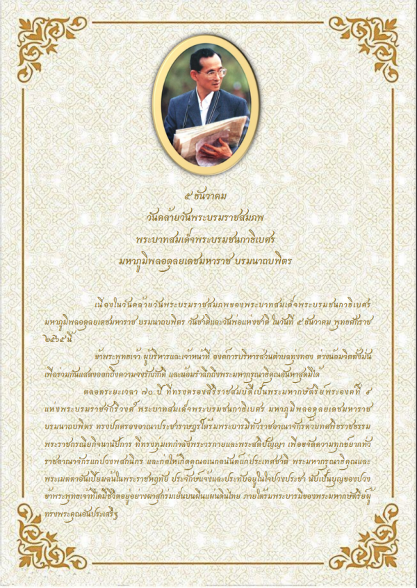 ๕ ธันวาคม วันคล้ายวันพระบรมราชสมภพ พระบาทสมเด็จพระบรมชนกาธิเบศร มหาภูมิพลอดุลยเดชมหาราช บรมนาถบพิตร