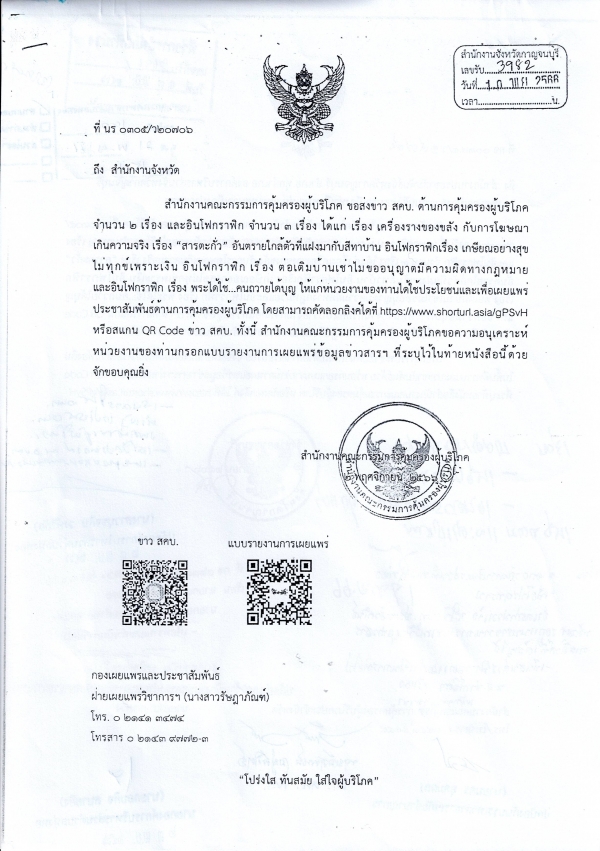 ประชาสัมพันธ์ข่าว สคบ.ด้านการคุ้มครองผู้บริโภค