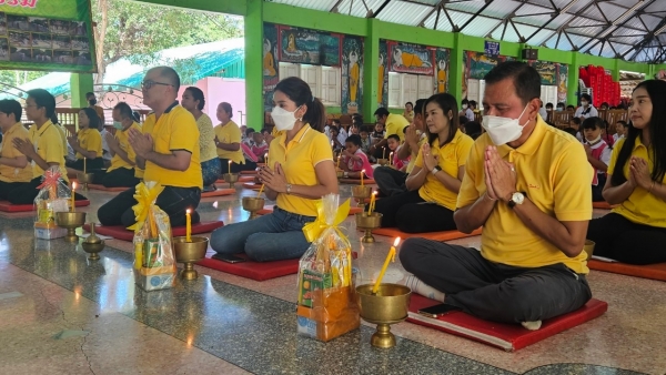 การจัดกิจกรรมทำบุญถวายเทียน ถวายเครื่องไทยธรรม เนื่องในวันสำคัญทางศาสนา