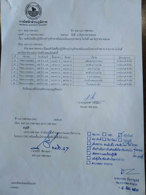 ประกาศดับกระแสไฟฟ้าชั่วคราว ในวันเสาร์ที่ 15 มิถุนายน 2567