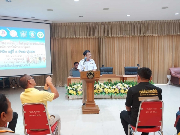 สถานีตำรวจภูธรหนองขาว ร่วมกับองค์การบริหารส่วนตำบลทุ่งทอง ได้จัดกิจกรรมชุมชนบำบัดอย่างยั่งยืน เพื่อแก้ไขปัญหายาเสพติดแบบครบวงจรตามยุทธศาสตร์ชาติโดยได้เกียรติจากท่าน นายนพพล สุกิจปาณีนิจ(นายอำเภอท่าม่วง) เป็นประธานเปิดโครงการ โดยมีท่านผู้กำกับ พ.ต.อ.สันติ พิทักษ์สกุล นายกกอบกิจ สบายยิ่ง(นายก อบต.ทุ่งทอง) นายสุนทร เหมือนรุ่ง(รองนายก อบต.ทุ่งทอง) นายรุ่งธรรม สง่าโฉม (รองนายก)ท่านกำนัน พีระพันธุ์ วีระสุนทร ผู้ใหญ่ทุกหมู่ ผู้นำชุมชน เข้าร่วมโครงการโดยพร้อมเพียงกัน