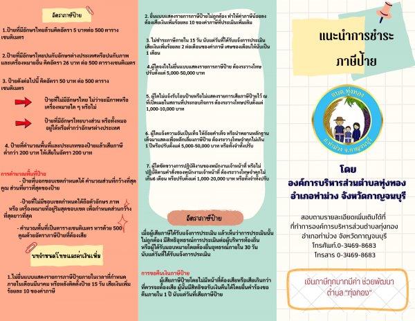 แนะนำการชำระภาษีป้าย องค์การบริหารส่วนองค์การบริหารส่วนตำบลทุ่งทอง