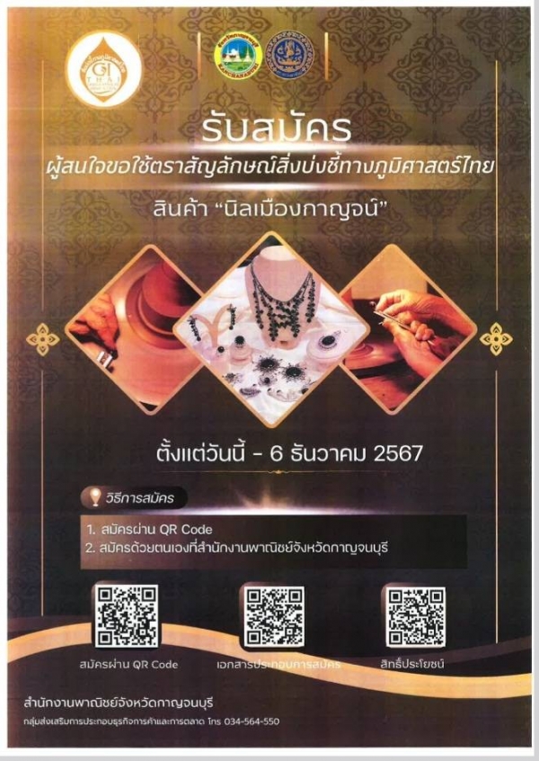 รับสมัคร ผู้สนใจขอใช้ตราสัญลักษณ์สิ่งบ่งชี้ทางภูมิศาสตร์ไทย สินค้า " นิลเมืองกาญจน์"