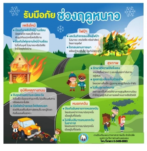 ข่าวประชาสัมพันธ์ การเตรียมการป้องกันและแก้ไขปัญหาภัยจากอากาศหนาว ปี 2567- 2568 กรมอุตุนิยมวิทยา คาดการณ์ว่าประเทศไทยจะเริ่มเข้าสู่ฤดูหนาวและจะมีอากาศหนาวเย็นมากกว่าปีที่ผ่านมา โดยในช่วงเดือนธันวาคม 2567 ถึงช่วงเดือนมกราคม 2568 จะเป็นช่วงเวลาที่มีอากาศหนาวเย็นที่สุดและจะสิ้นสุดฤดูหนาวประมาณปลายเดือนกุมภาพันธ์ 2568
