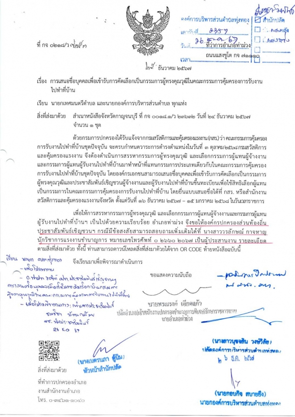 การเสนอชื่อบุคคลเพื่อเข้ารับการคัดเลือกกเป็นกรรมการผู้ทรงคุณวุฒิในคณะกรรมการคุ้มครองการรับงานไปทำที่บ้าน
