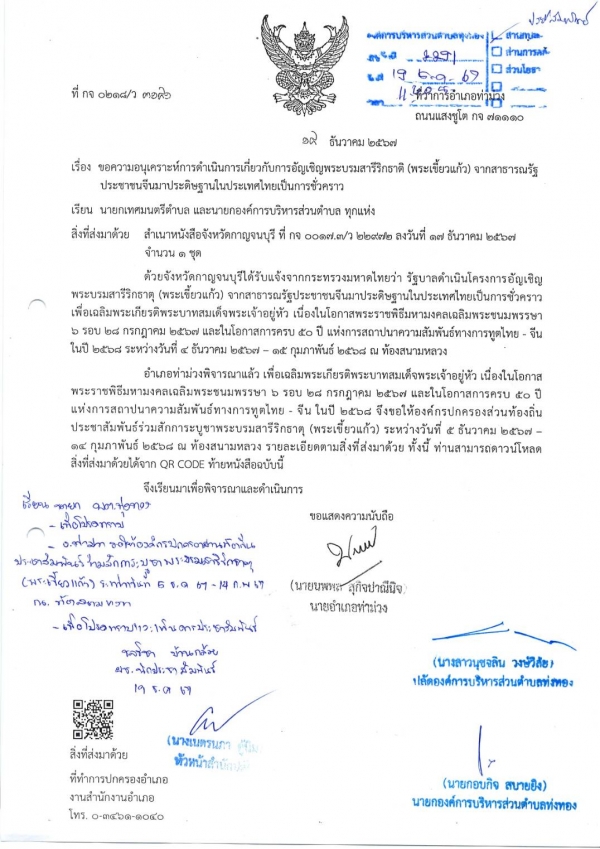 ประชาสัมพันธ์การดำเนินการเกี่ยวกับการอัญเชิญพระบรมสารีริกธาติ (พระเขี้ยวแก้ว) จากสาธารณรัฐประชาชนจีน มาประดิษฐานในประเทศไทยเป็นการชั่วคราว
