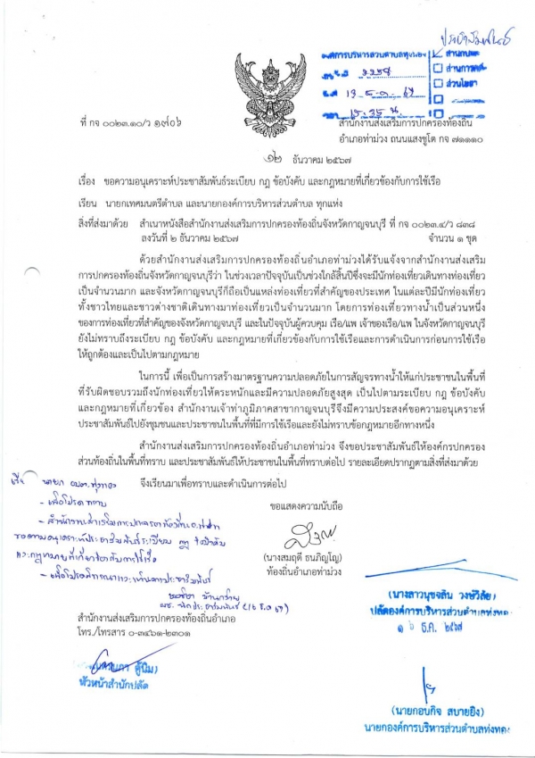 ขอความอนุเคราะห์ประชาสัมพันธ์ระเบียบ กฎ ข้อบังคับ และกฎหมายที่เกี่ยวข้องกับการใช้เรือ