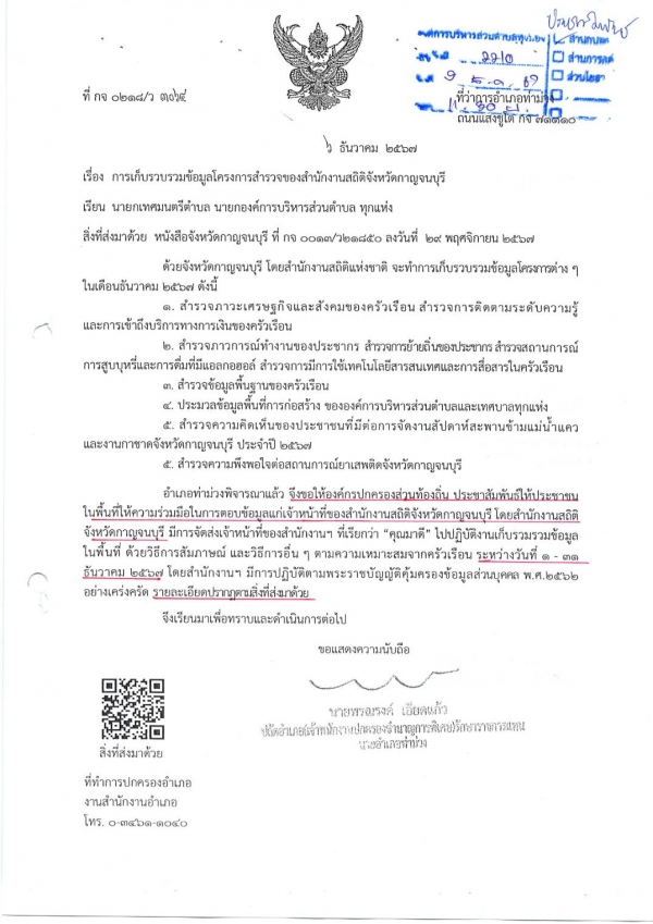 การเก็บรวบรวมข้อมูลโครงการสำรวจของสำนักงานสถิติจังหวัดกาญจนบุรี