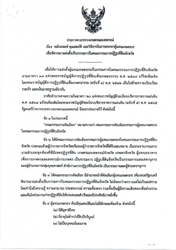 ข่าวประชาสัมพันธ์ เสนอรายชื่อผู้มีคุณสมบัติเป็นผู้แทนเกษตรกรในคณะกรรมการปฏิรูปที่ดินจังหวัด