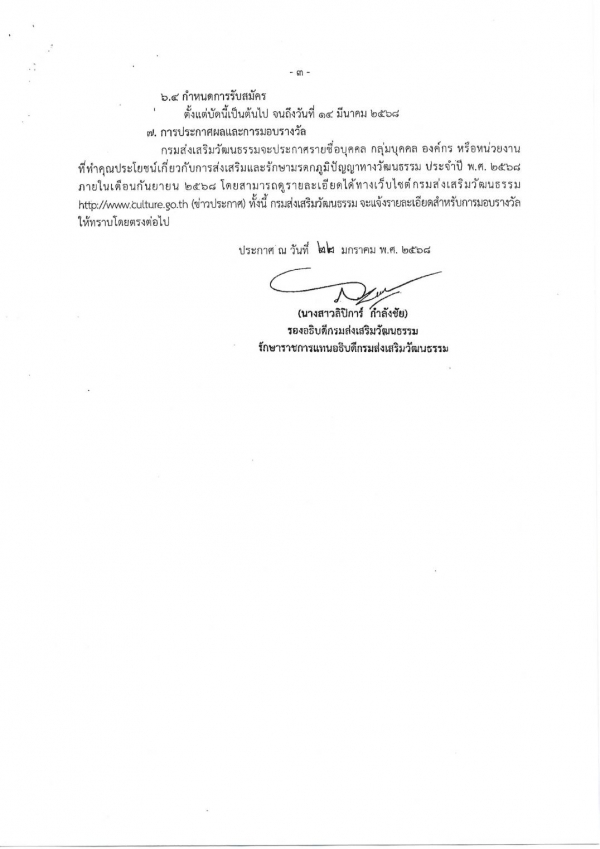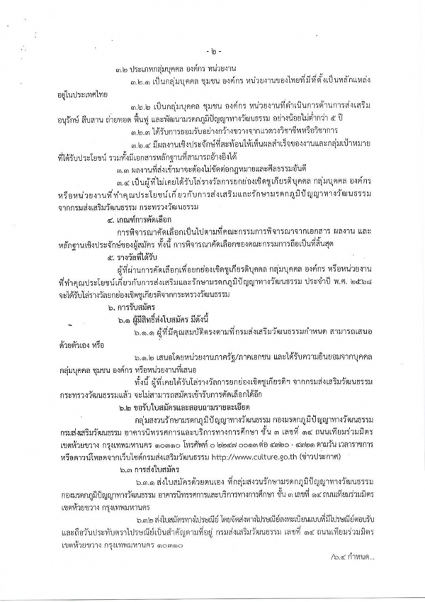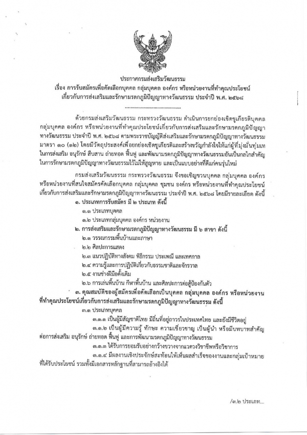 ข่าวประชาสัมพันธ์การรับสมัครเพื่อคดเลือกบุคคล กลุ่มบุคคล องค์กร หรือหน่วยงานที่ทำคุณประโยชน์เกี่ยวกับการส่งเสริมและรักษามรดกภูมิปัญญาทางวัฒนธรรม ประจำปี พ.ศ .2568