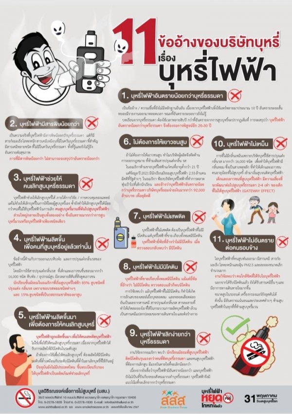 11 ขออ้างของบริษัทบุหรี่ เรื่องบุหรี่ไฟฟ้า