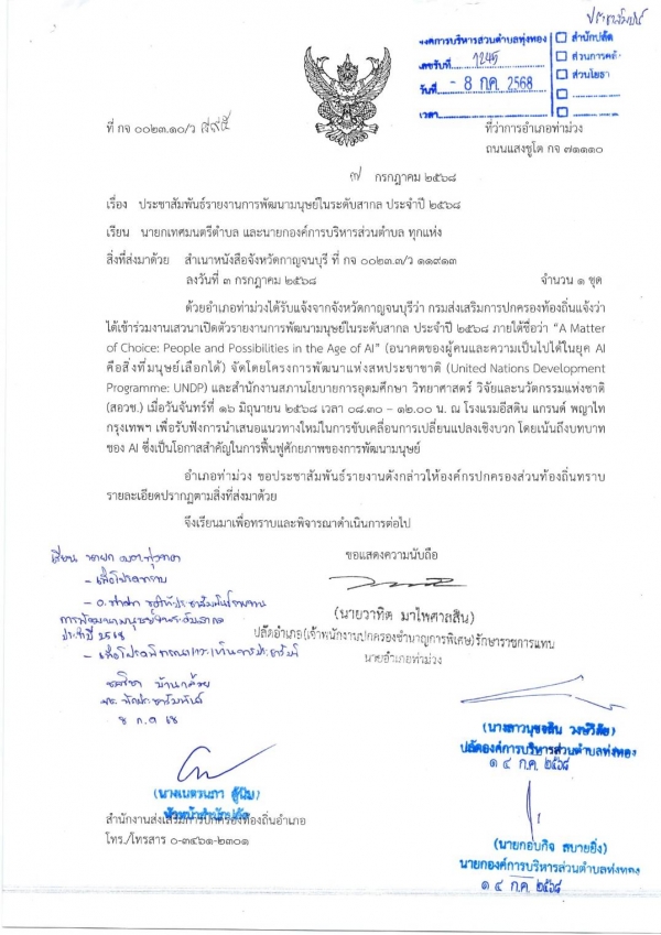 ข่าวประชาสัมพันธ์รายงานการพัฒนามนุษย์ในระดับสากล ประจำปี 2568