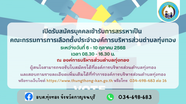 ประกาศองค์การบริหารส่วนตำบลทุ่งทอง เรื่อง การรับสมัครบุคคลเข้ารับการสรรหาเป็นคณะกรรมการการเลือกตั้งประจำองค์การบริหารส่วนตำบลทุ่งทอง