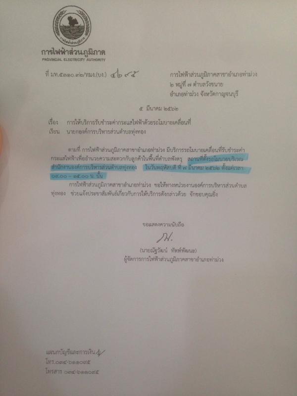 ประชาสัมพันธ์ค่ะ การไฟฟ้าส่วนภูมิภาคสาขาท่าม่วง