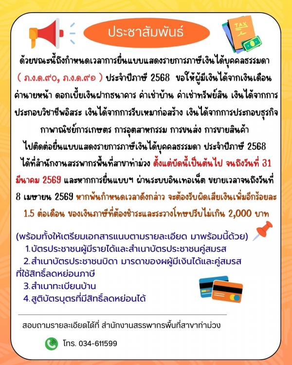 ข่าวประชาสัมพันธ์การยื่นแบบแสดงรายการภาษีเงินได้บุคคลธรรดา ปีภาษี 2568