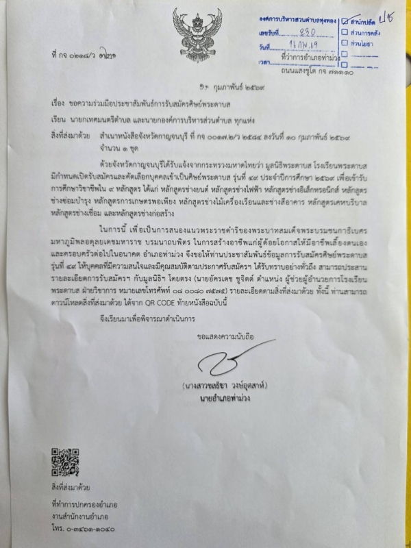 ข่าวประชาสัมพันธ์เรื่องการรับสมัครศิษย์พระดาบส
