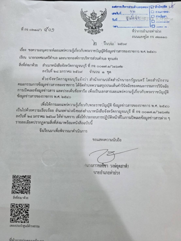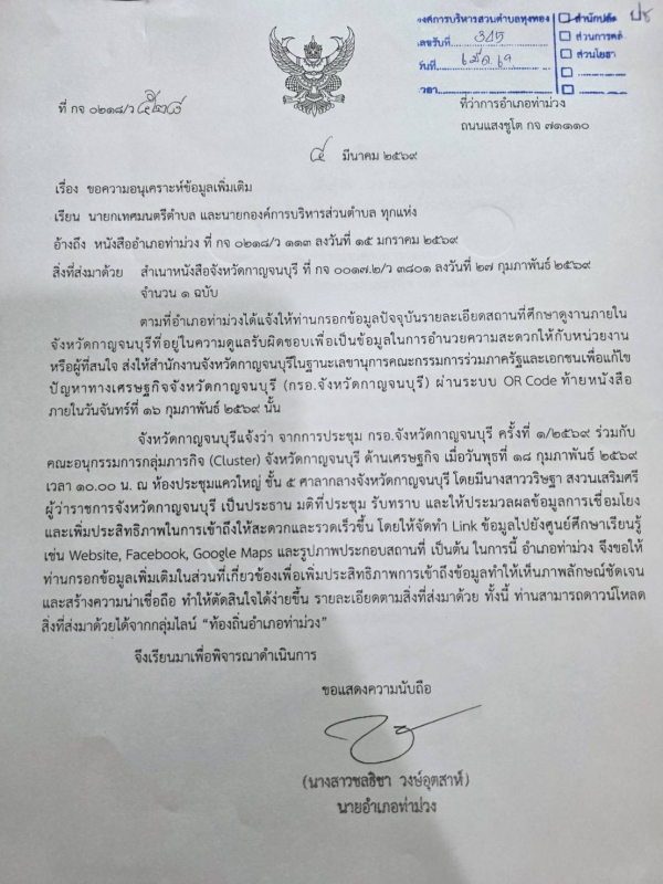 แชทกับ องค์การบริหารส่วนตำบลทุ่งทอง อำเภอท่าม่วง จังหวัดกาญจนบุรี