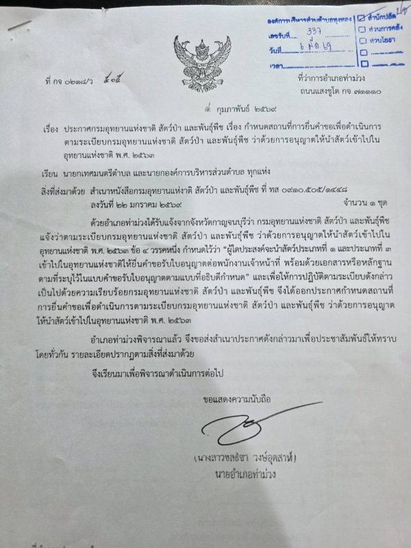ข่าวประชาสัมพันธ์ เรื่อง กำหนดสถานที่การยื่นคำขอเพื่อดำเนินการตามระเบียบกรมอุทยานแห่งชาติ สัตว์ป่า และพันธุ์พืช ว่าด้วยการอนุญาตให้นำสัตว์เข้าไปในอุทยานแห่งชาติ พ.ศ.2563