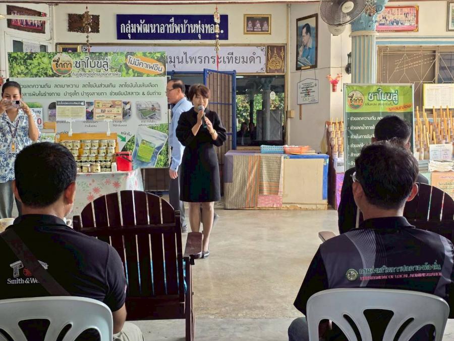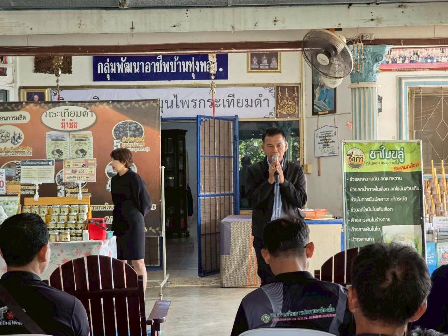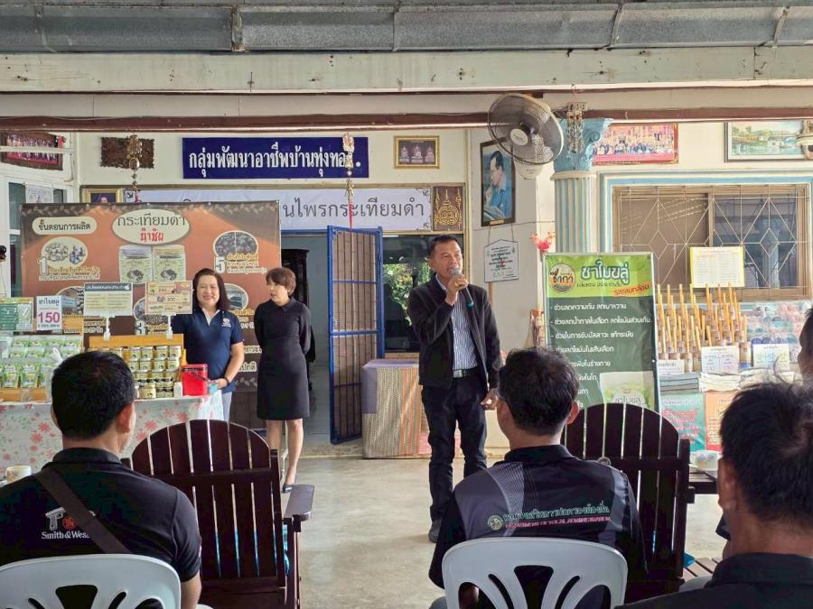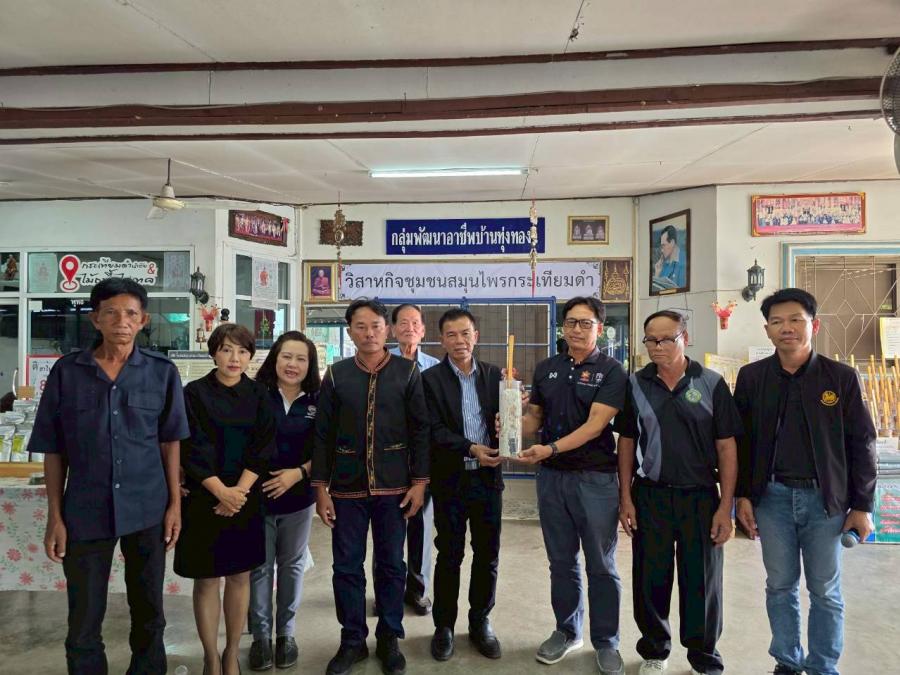 น.ส.นุชจลิน วงษ์วิลัย ปลัด อบต.ทุ่งทอง ร่วมต้อนรับคณะศึกษาดูงานจากองค์การบริหารส่วนตำบลยาง อ.กันทรารมย์ จ.ศรีสะเกษ ณ กลุ่มพัฒนาอาชีพบ้านทุ่งทอง/วิสาหกิจชุมชนสมุนไพรกระเทียมดำ