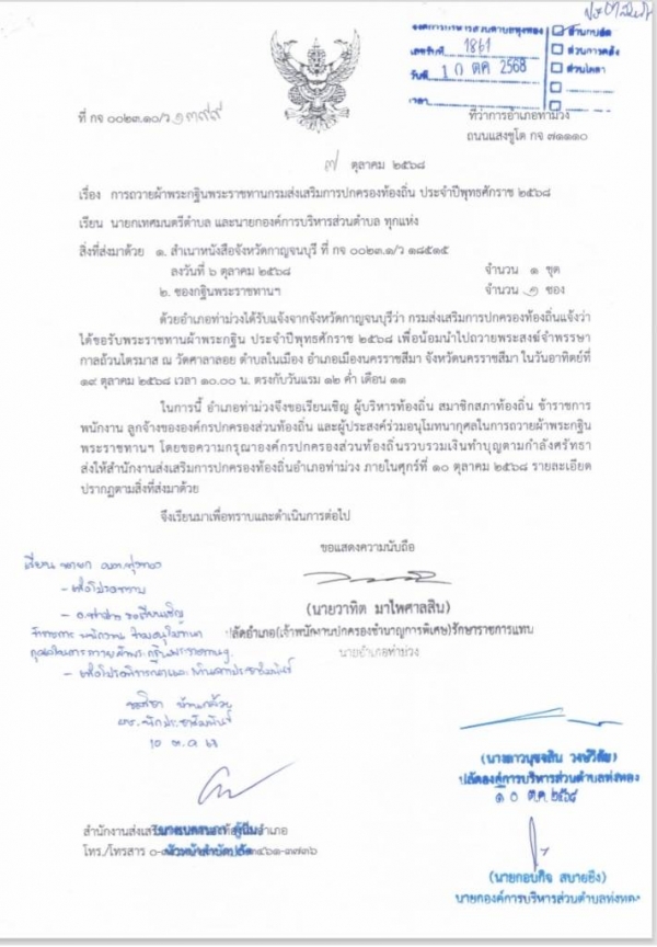 ประชาสัมพันธ์ ขอเรียนเชิญถวายผ้าพระกฐินพระราชทานกรมส่งเสริมการปกครองท้องถิ่น ประจำปีพุทธศักราช 2568