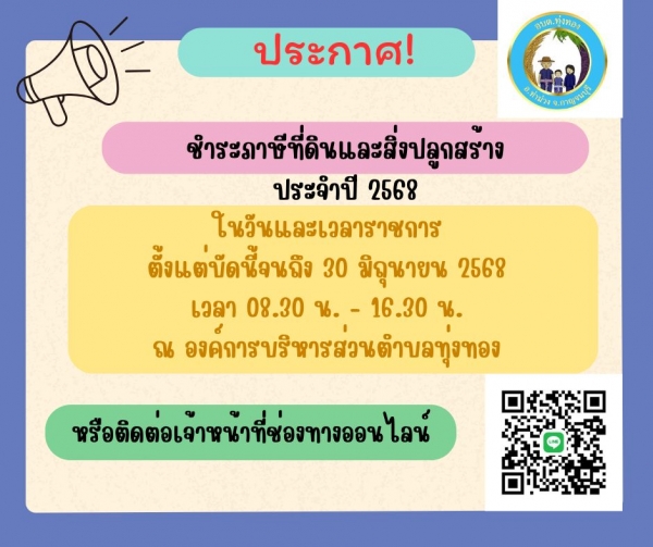 ประกาศชำระภาษีที่ดินและสิ่งปลูกสร้าง 2568
