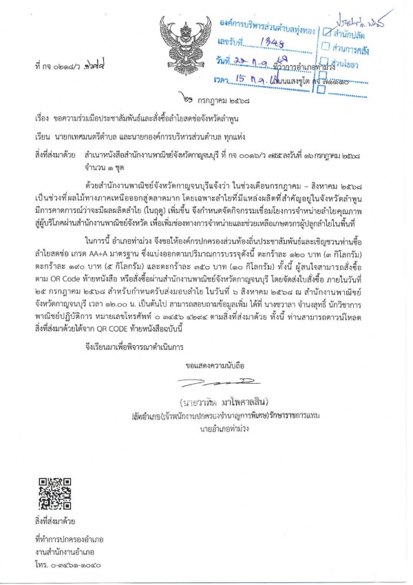 ประชาสัมพันธ์เชิญชวนสั่งซื้อลำไยสดช่อจังหวัดลำพูน